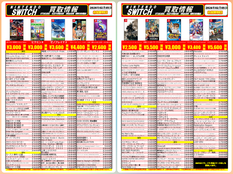 お宝買取団東広島店ゲームコーナーより、Nintendo Switchソフトの最新買取チラシ情報をお届けします!