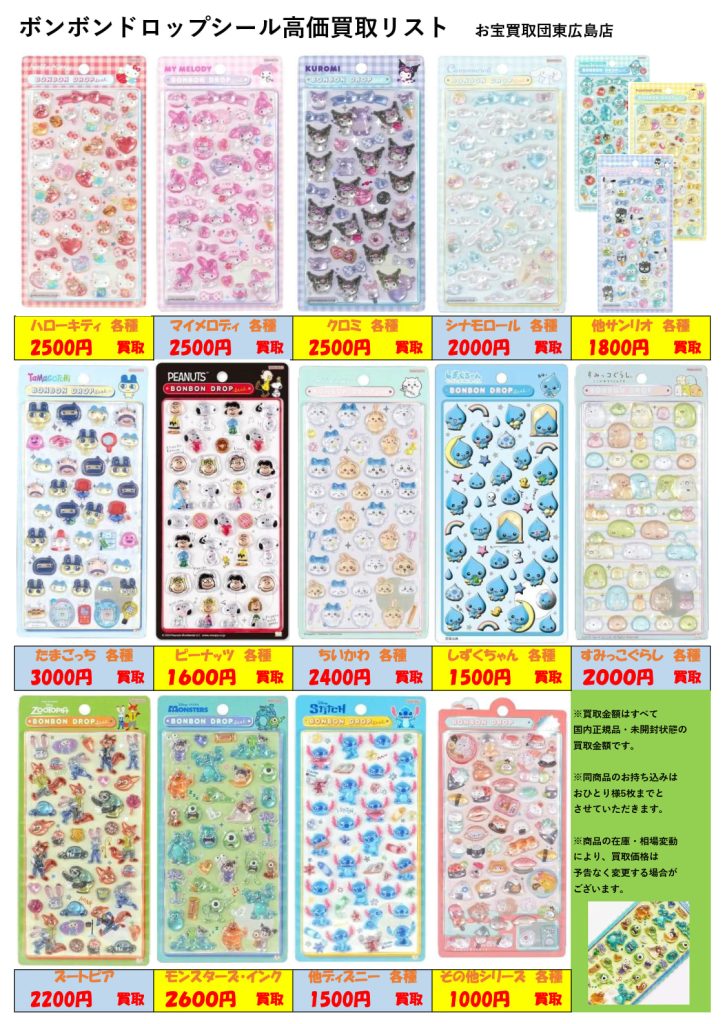 人気爆発で買取価格急騰中!1/10更新「ボンボンドロップシール」最新買取チラシ公開!たまごっち・サンリオ系など大幅UP!