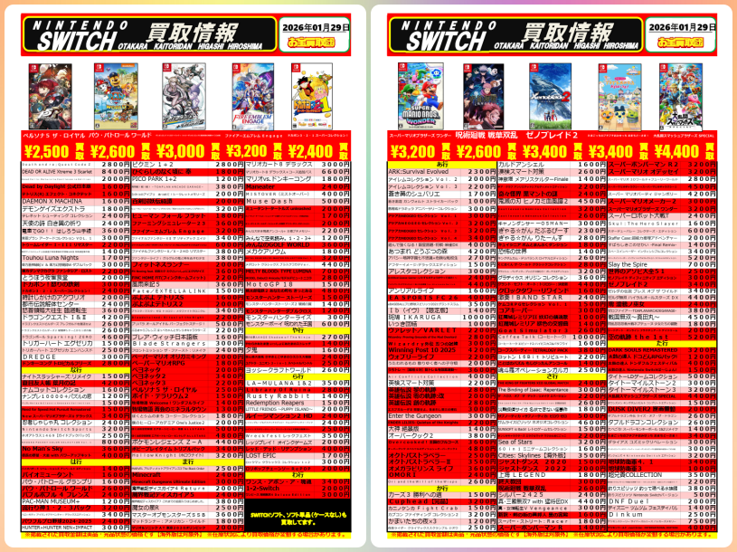 お宝買取団東広島店より、ニンテンドースイッチソフトの最新高価買取情報をお届けします!