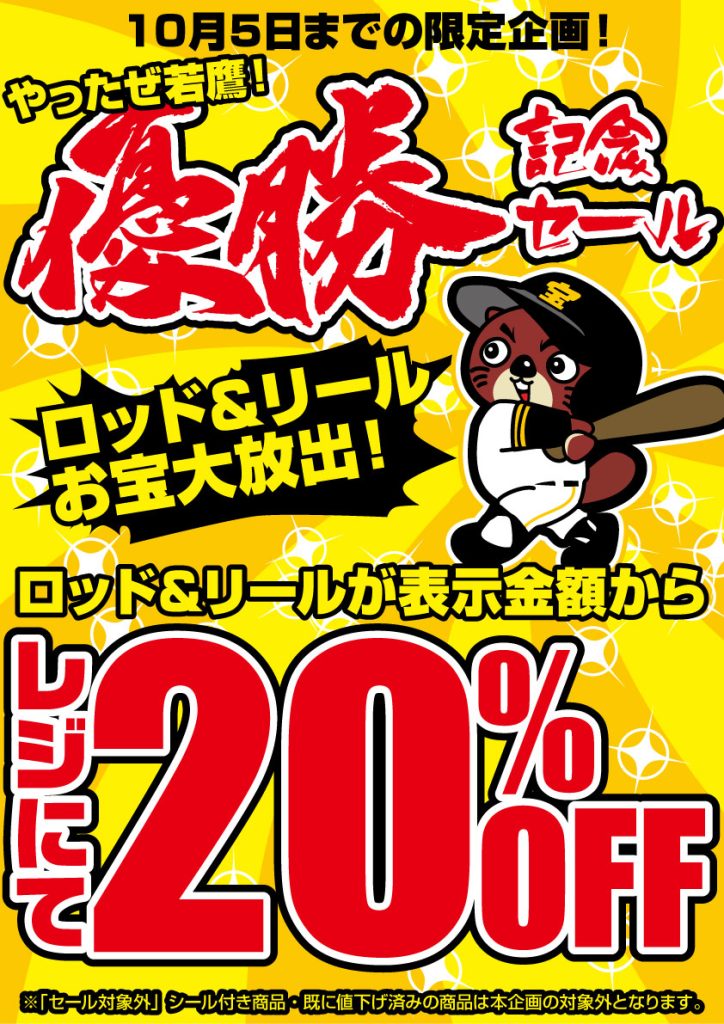 釣具ロッド&リール限定!表示価格よりレジにて更に20%OFF!!