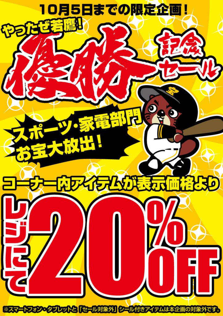 スポーツ・家電・日用品・アウトドアコーナー限定!表示価格よりレジにて更に20%OFF!!