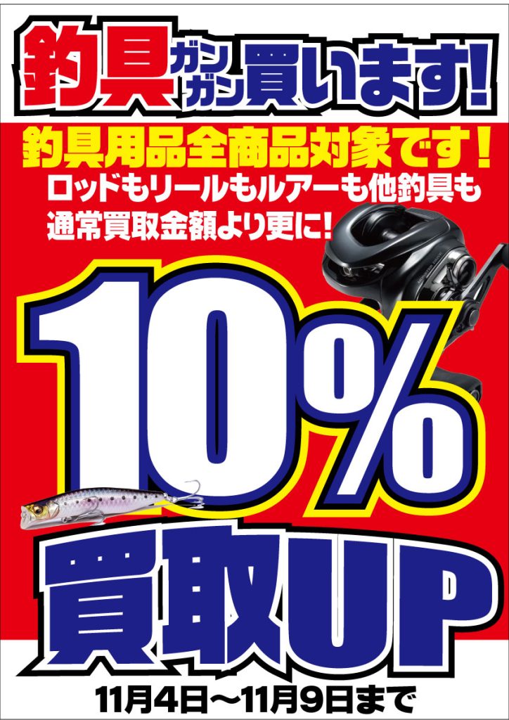 202511.04 釣具 高価買取爆釣チャンス!期間限定・釣具買取価格アップキャンペーン中! マンガ倉庫八女店釣具コーナーから超BIGな高価買取チャンスのご案内!11/4~11/9の期間限定でロッド・リール・ルアー他釣具の買取が通常よりも更に… いつも以上に高く買わせてください! アナタのお宝釣具、10%増しで買わせて頂きます! でっかく稼ぐなら今がチャンス! この機会に是非ともお売りください! LINE公式アカウントをフォロー LINE公式アカウントを友だち登録して最新情報をチェックしよう!